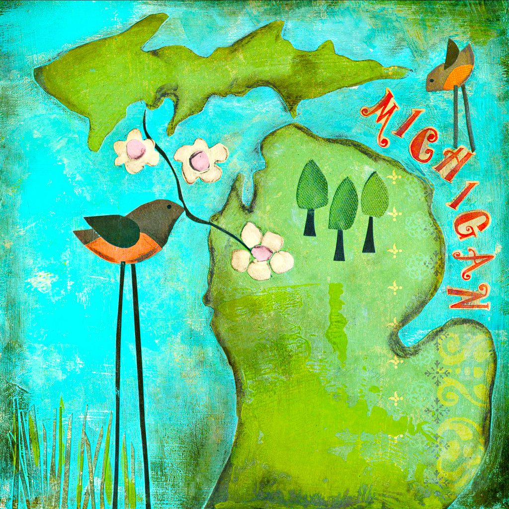 My original pieces are created using acrylics, inks, charcoal, paper and other elements to create unique one of a kind art full of whimsical imagery. Each piece is full of texture and depth that creates visual interest. This detail is shown on the quality of prints that I make.