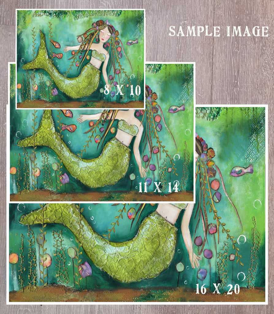 My original pieces are created using acrylics, inks, charcoal, paper and other elements to create unique one of a kind art full of whimsical imagery. Each piece is full of texture and depth that creates visual interest. This detail is shown on the quality of prints that I make.