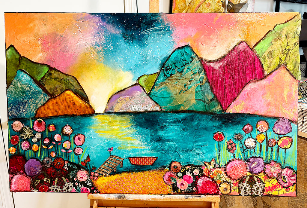 The Secret Lake 30" x 40"..Original Mixed media Painting and collage