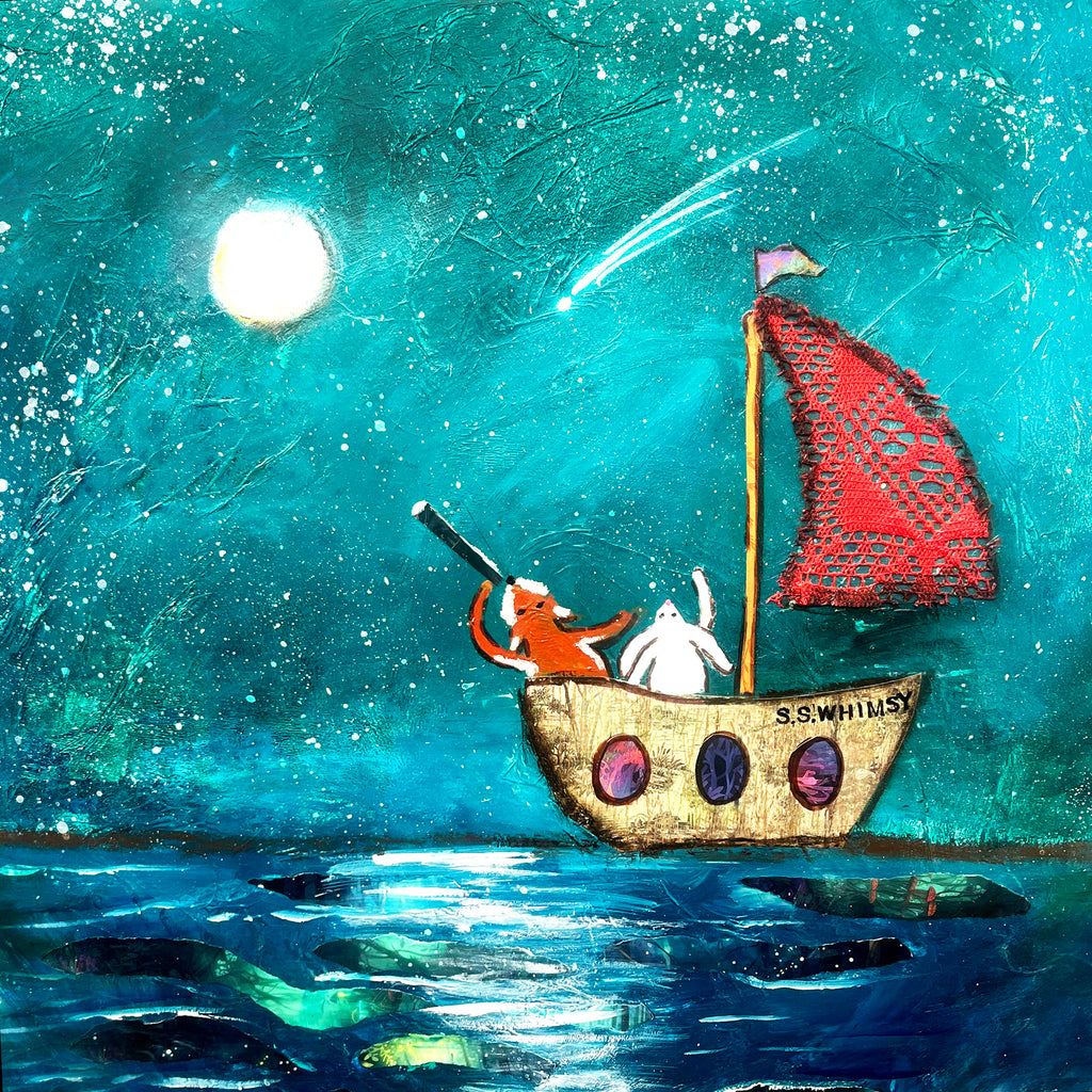 My original pieces are created using acrylics, inks, charcoal, paper and other elements to create unique one of a kind art full of whimsical imagery. Each piece is full of texture and depth that creates visual interest. This detail is shown on the quality of prints that I make.